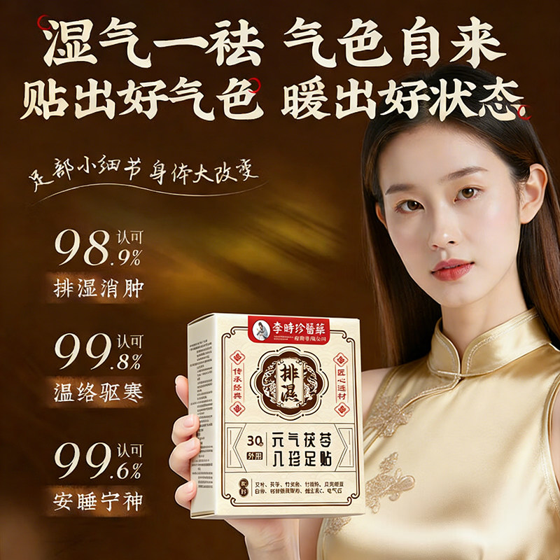 李时珍元气茯苓八珍足贴祛湿睡眠调理足部护理艾草艾灸睡眠穴位贴
