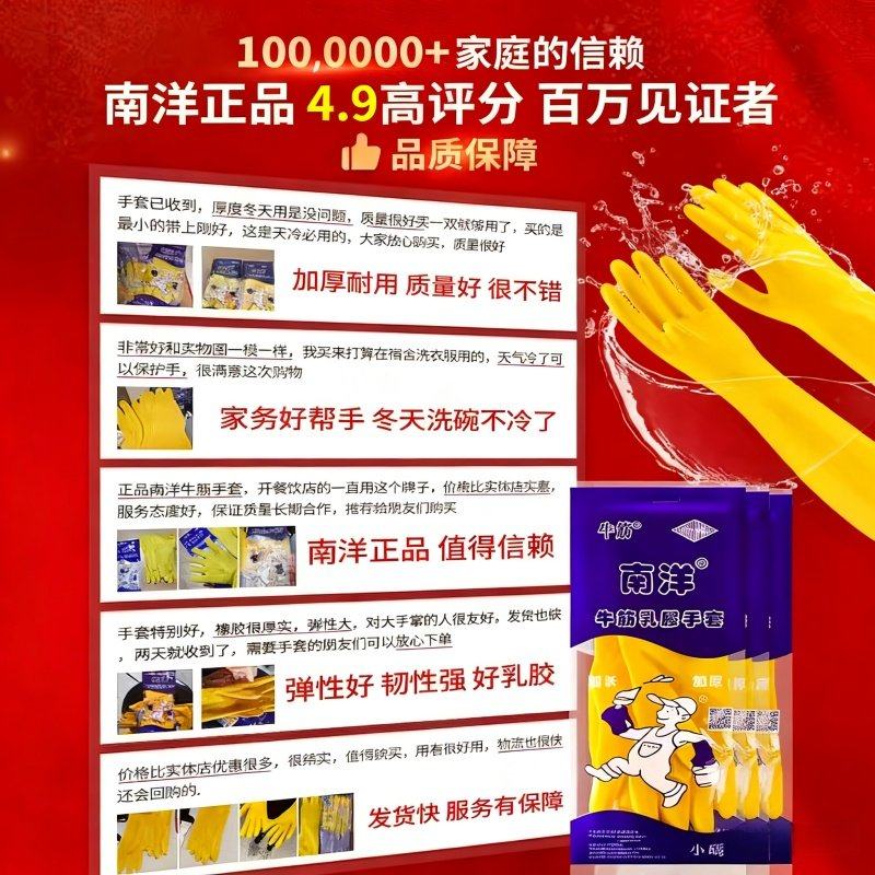 牛筋乳胶橡胶硅胶手套家务洗碗厨房耐用胶皮加厚劳保耐磨防水洗衣