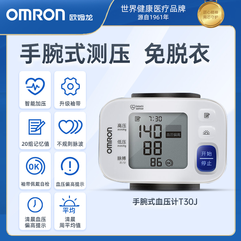 欧姆龙手腕式电子血压测量仪T30J家用精准智能量血压自检血压计