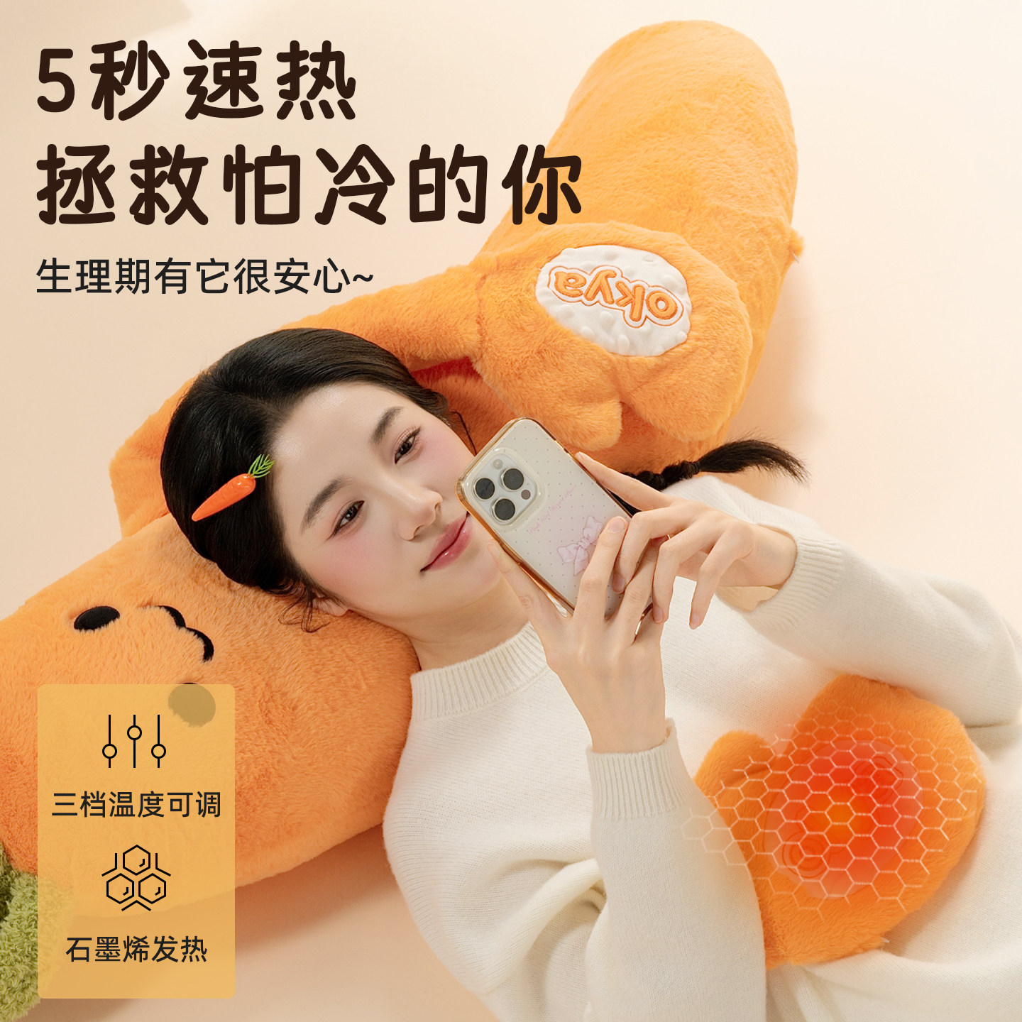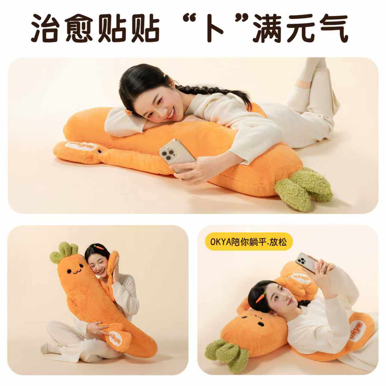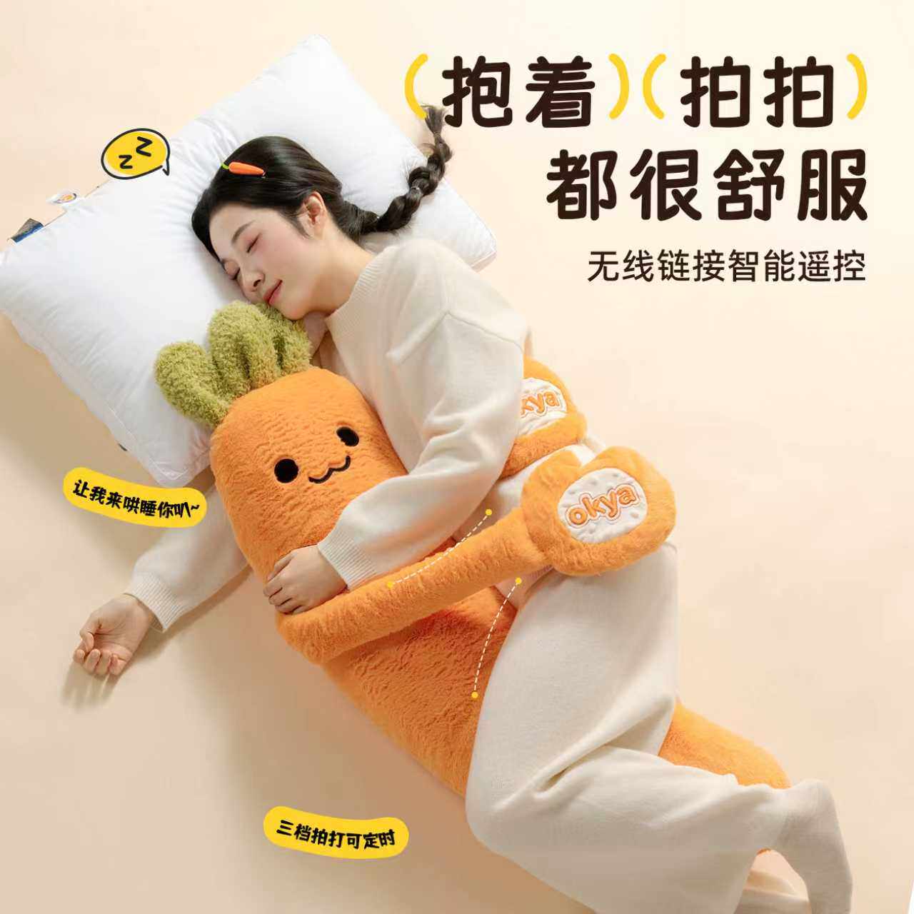 OKYA胡萝卜大王哄睡拍打抱枕神器女生夹腿睡觉专用成人公仔玩偶