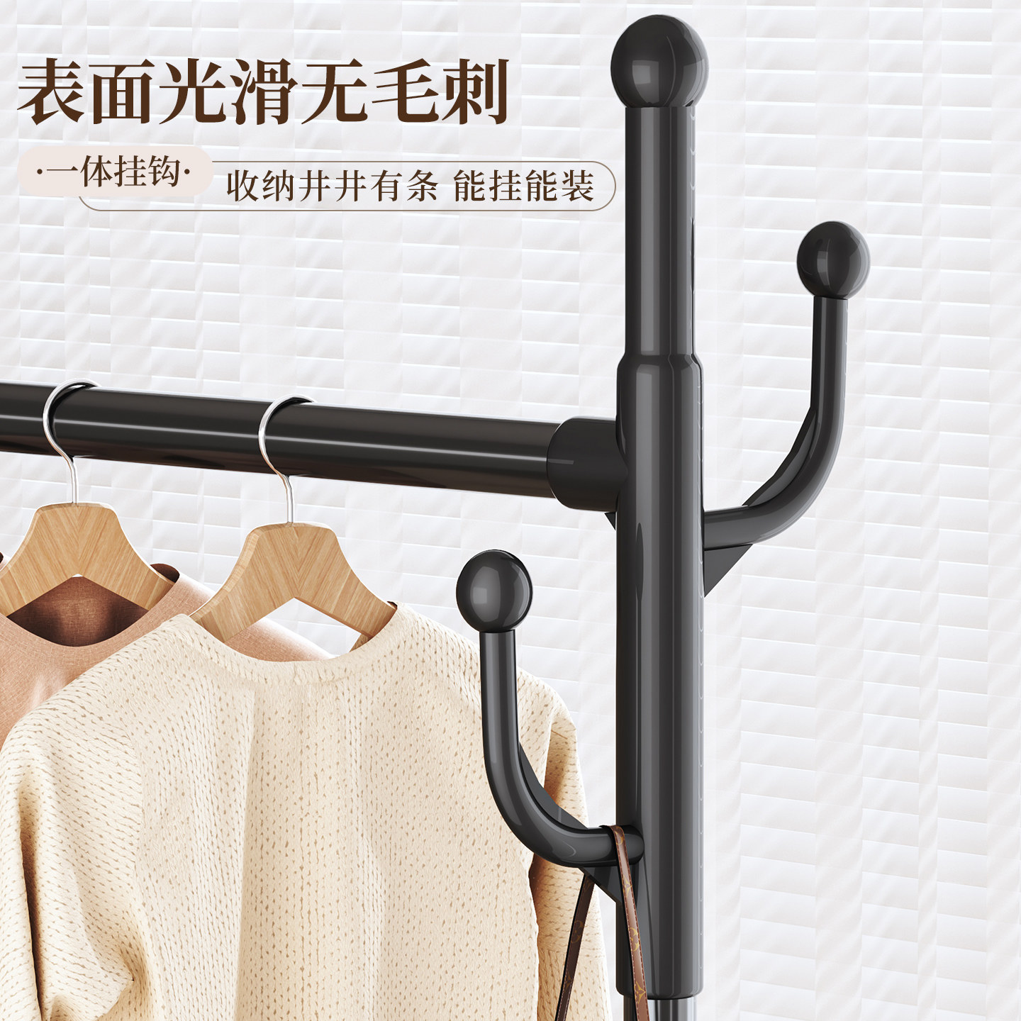 晾衣架落地家用可移动卧室凉衣架阳台挂衣服架子室内简易杆衣帽架