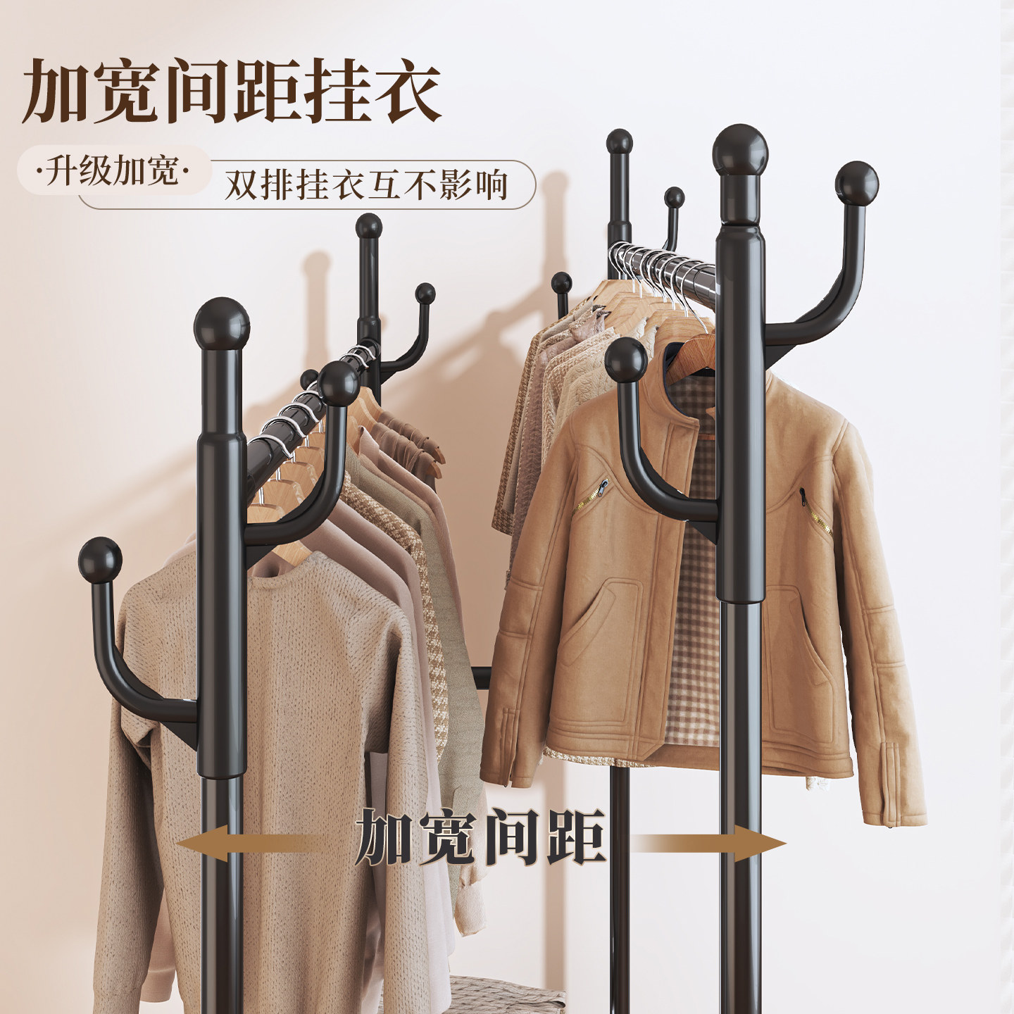 晾衣架落地家用卧室挂衣架宿舍室内双杆双层晒衣服架子简易凉衣杆