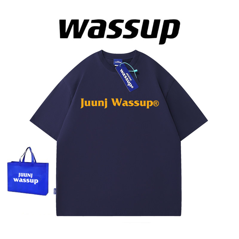 WASSUP美式重磅纯棉短袖男女国潮牌字母印花休闲体恤情侣宽松上衣