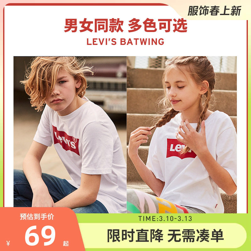 李维斯儿童装男童短袖T恤夏季新款中大童纯棉上衣女童半袖亲子装