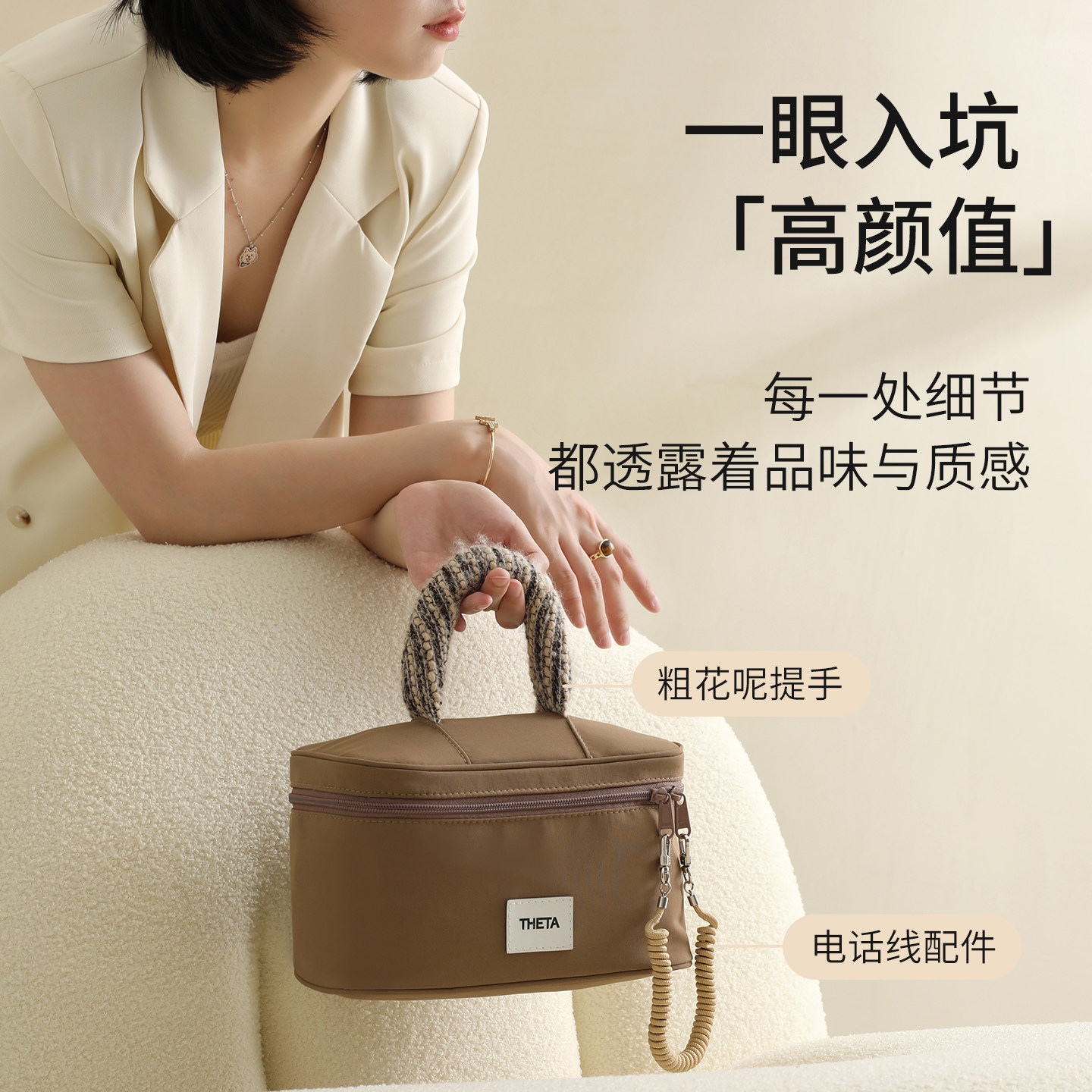 多巴胺豆腐包迷你网纱便携旅行洗漱化妆品收纳包补妆包网格杂物包
