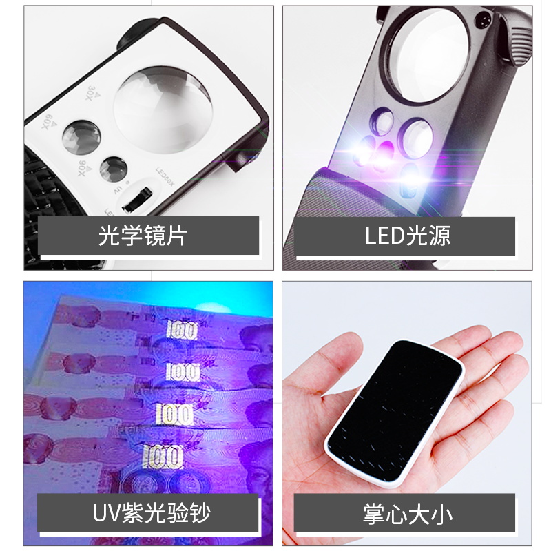 抽拉放大镜30倍带灯白紫光60便携式验钞瓷器邮票古董文玩瓷器银元
