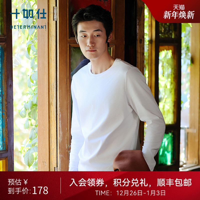【50支重磅】十如仕男女纯棉圆领长袖T恤男装整理发热打底衫T05