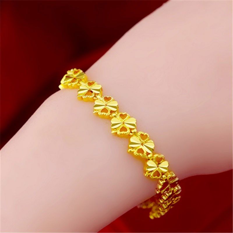 香港千足沙金手链女时尚手镯爱心玫瑰手链防黄金色转运珠金手gg