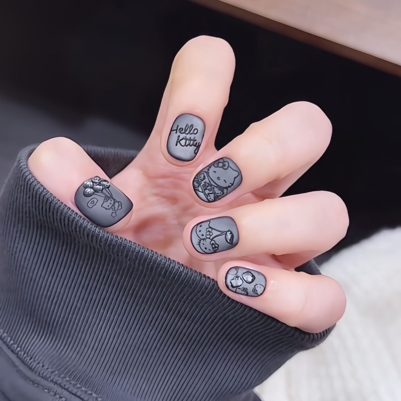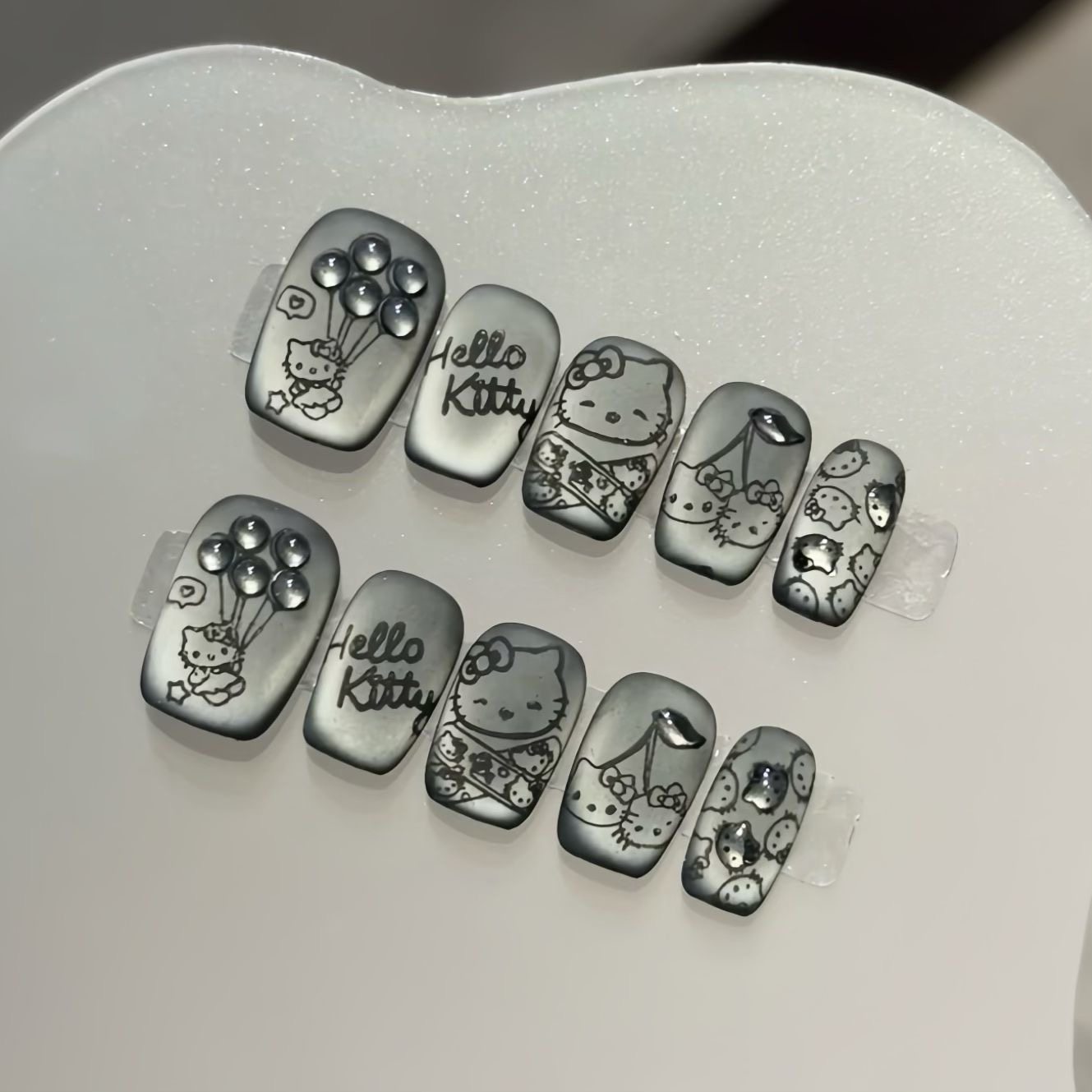Kitty猫手工穿戴甲黑色磨砂猫眼可爱立体简约法式显白ins美甲短款