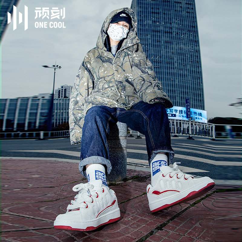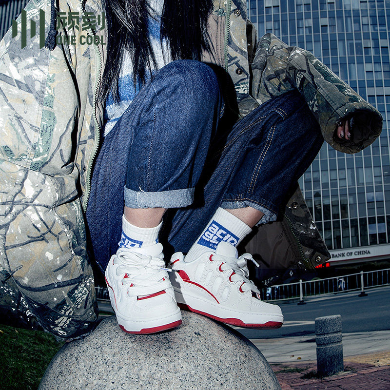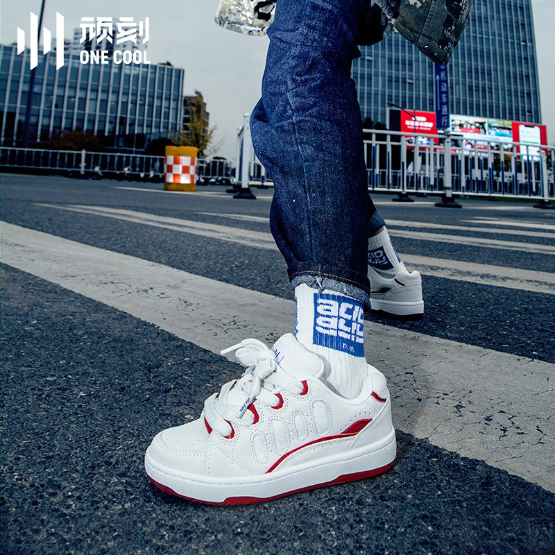 顽刻冷粘面包鞋红白复古秋冬减震耐磨滑板鞋