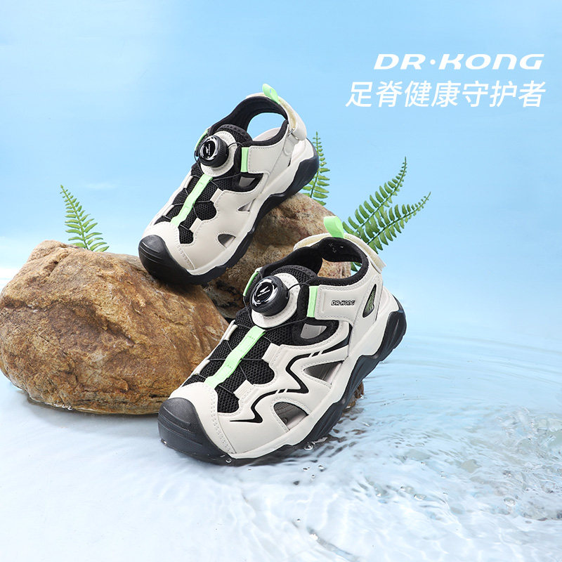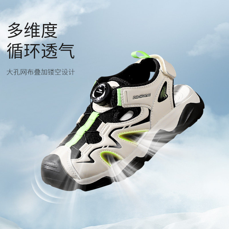 Dr.Kong江博士童鞋网布透气旋钮扣男孩夏季轻便运动风儿童凉鞋