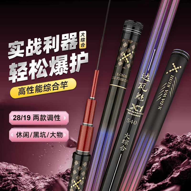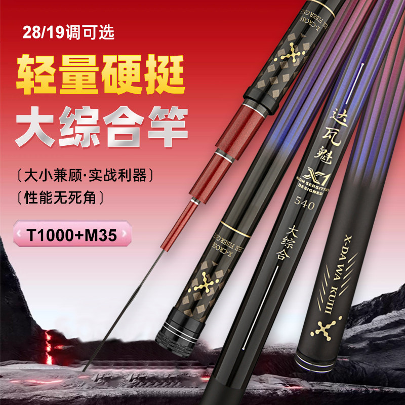 达瓦魁鱼竿手竿极轻综合竿轻硬碳素钓鱼竿大物鲢鳙台钓正品28调19