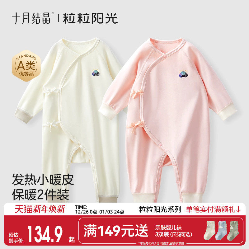 十月结晶粒粒阳光婴儿衣服保暖向日葵连体衣秋冬2件哈衣爬服睡衣