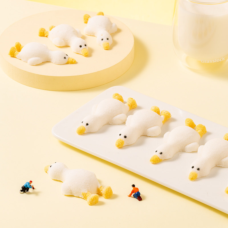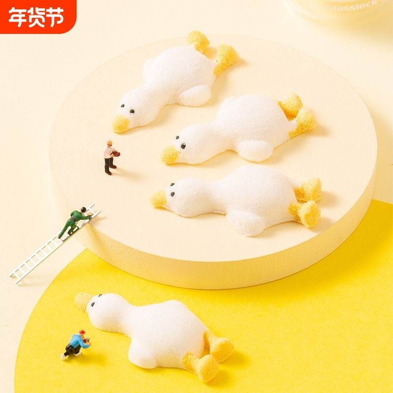 3D躺平鸭棉花糖冰粉装饰摆件网红烘焙造型软糖果零食批发解馋能量