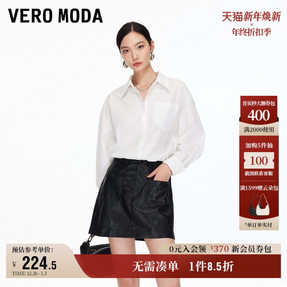 Vero Moda奥莱半身裙女2025秋冬新款PU双口袋A字短裙时髦百搭优雅