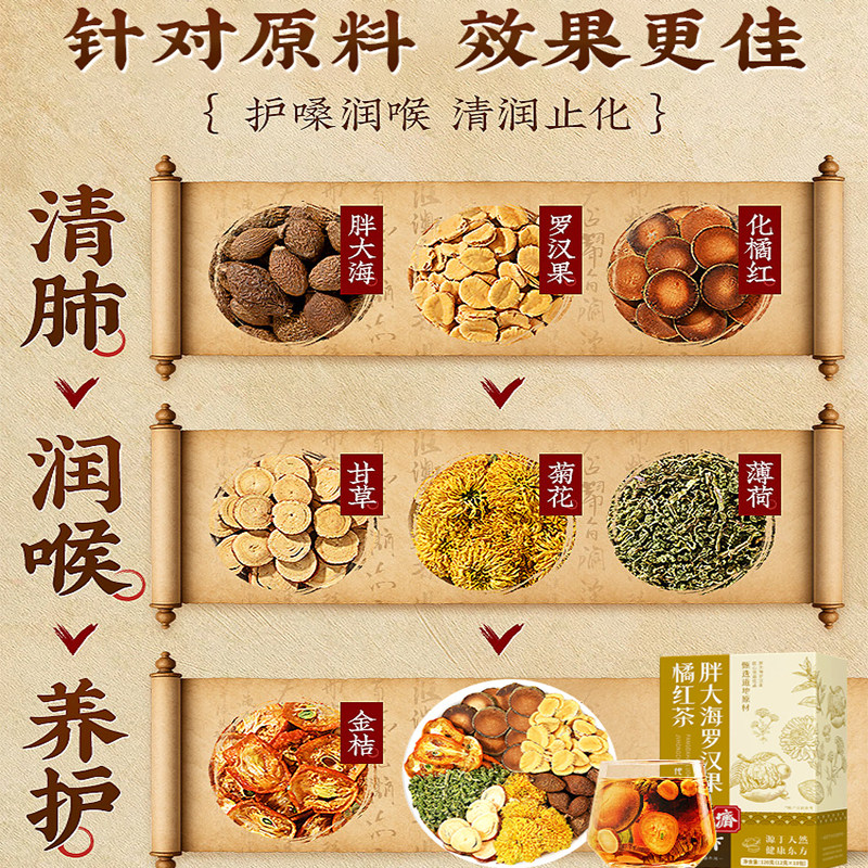 胖大海罗汉果咽清炎茶清养润喉甘草肺菊花茶痰止泡水咳正品旗舰店