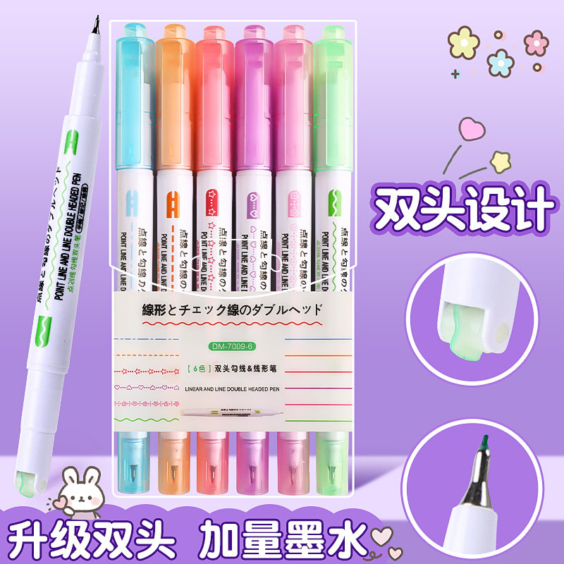 双头荧光笔标记学生套装 荧光笔批发 ins高颜值 网红记号笔笔记笔
