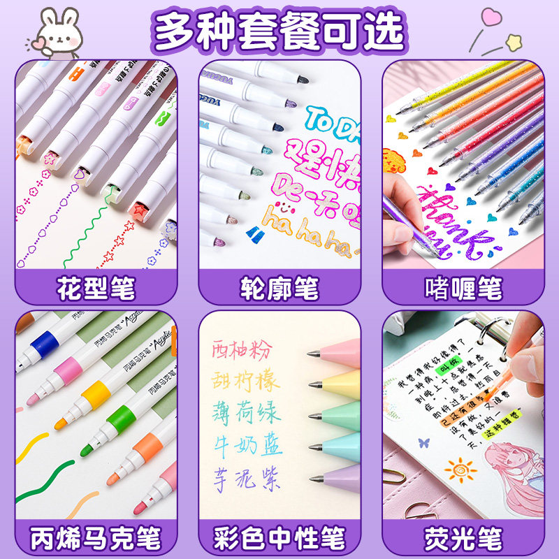果冻笔3D立体手账笔网红彩色手账专用笔学生用标记笔划重点荧光笔双色轮廓笔闪光啫喱笔指甲果汁笔手抄报画笔