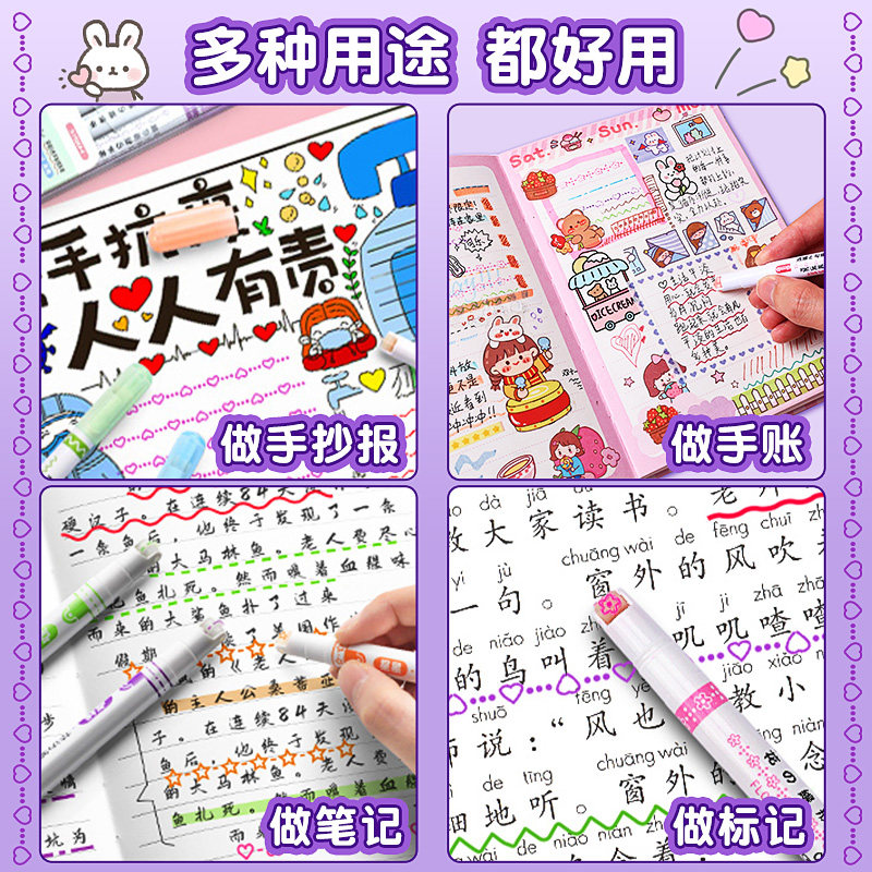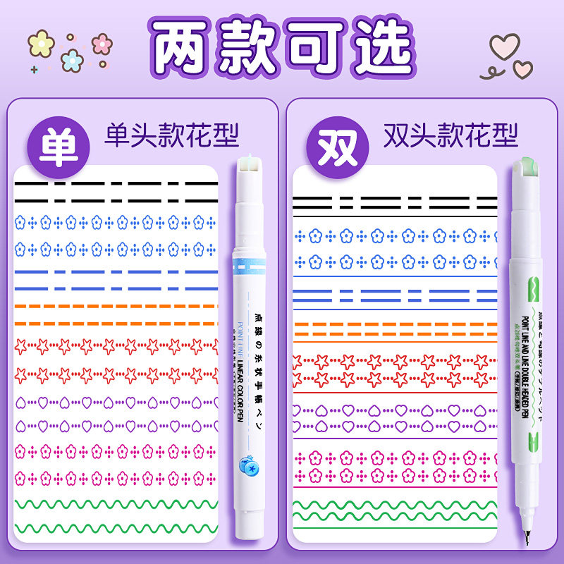 花型轮廓曲线笔手帐图案彩色标记花纹荧光色手账多色笔儿童花形多功能花边花色记号手抄报专用印花线条滚轮笔