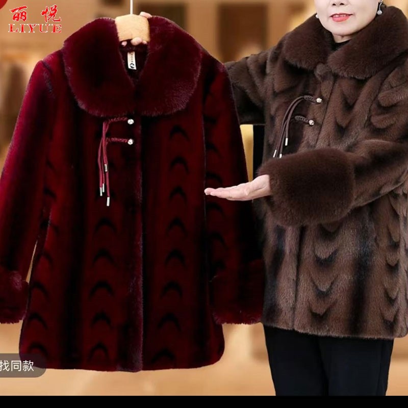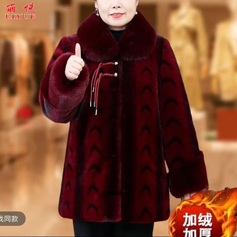 妈妈秋冬防水貂绒外套洋气中老年女冬季皮毛一体大衣红色加绒高贵
