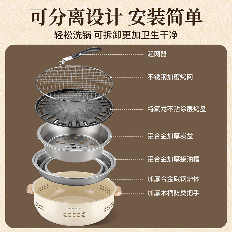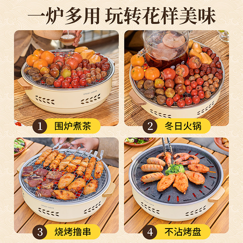 城市波浪围炉煮茶烤火炉套装2026新款家用烧烤炉子户外炉器具全套