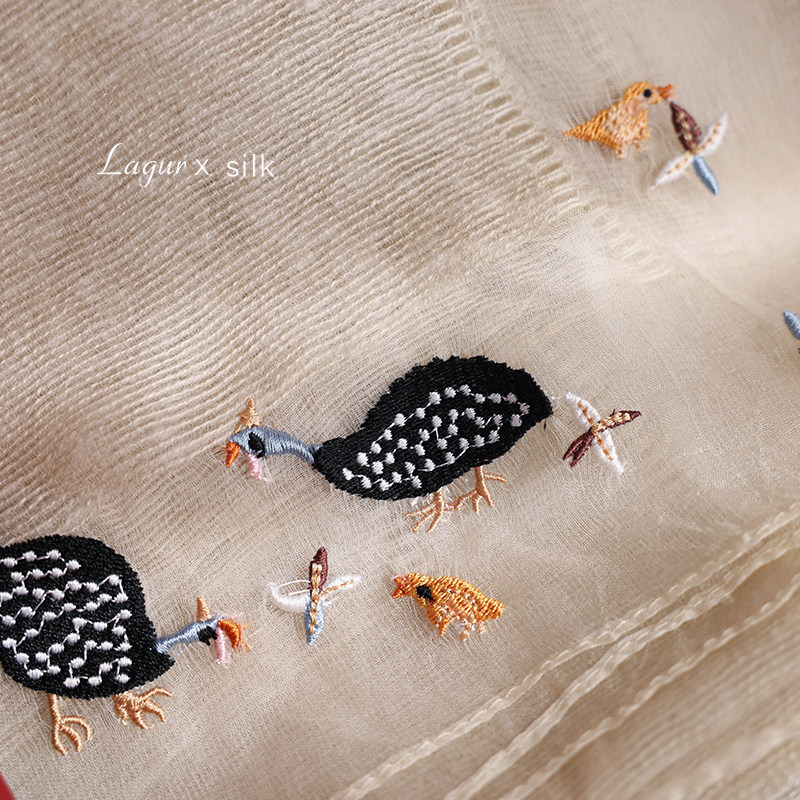 萌动岛中丨童趣刺绣桑蚕丝丝巾四季可用2025新款披肩外搭女送妈妈