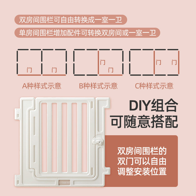 宠物围栏狗笼子狗栅栏双房间一室一卫自由组合中小型犬隔离栏狗窝