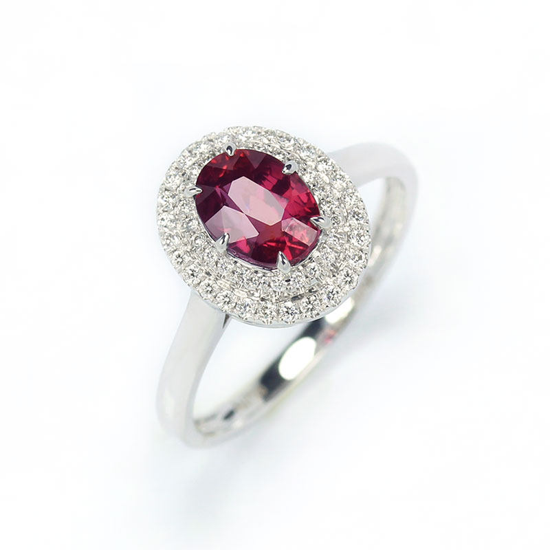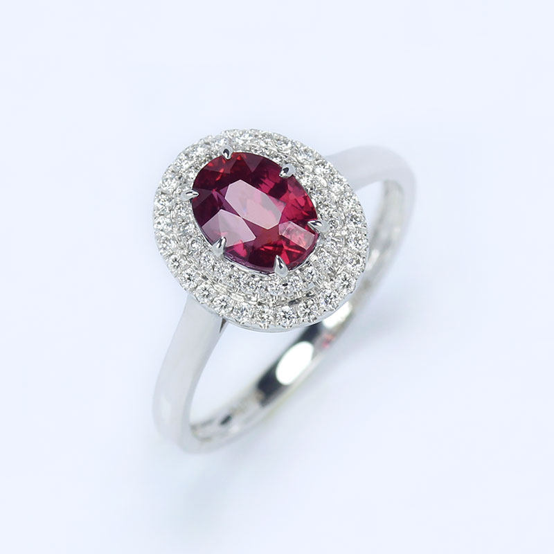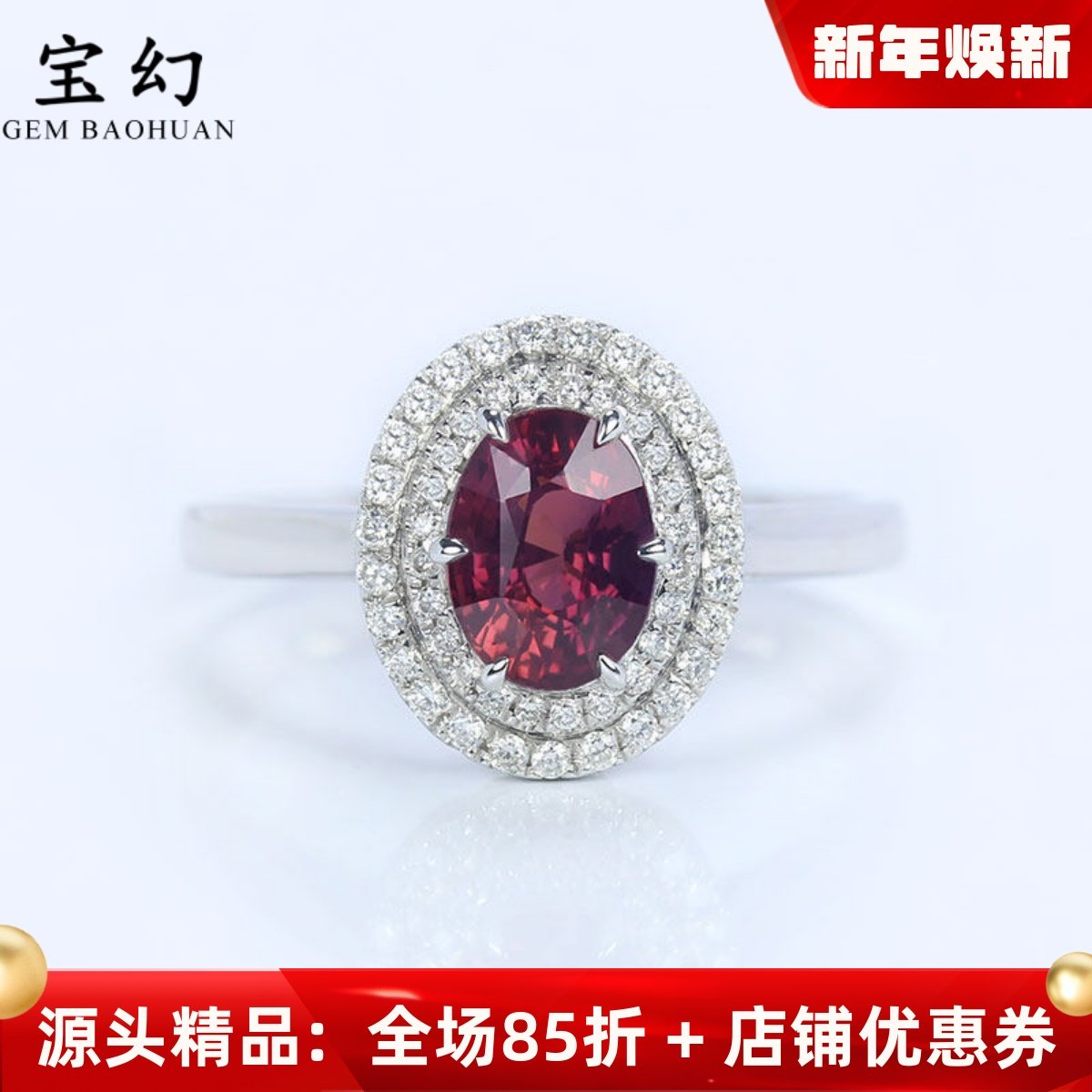 G18K白金天然无烧粉紫色蓝宝石钻石戒指 1.5克拉帕帕拉恰双证女款