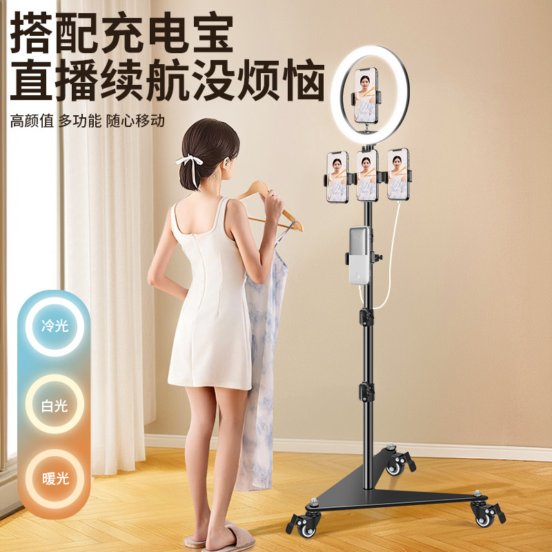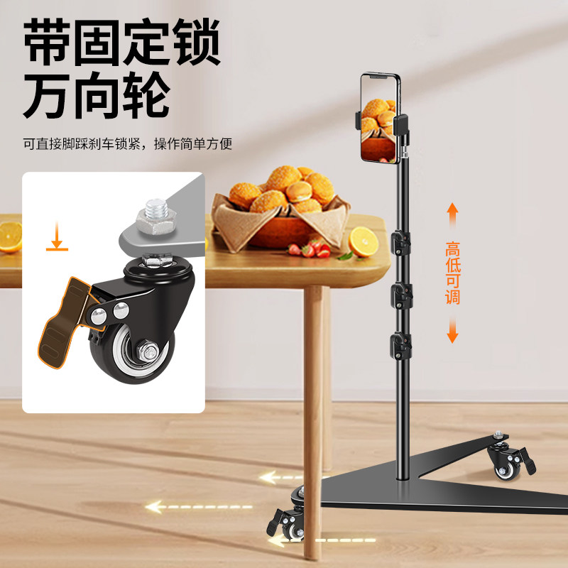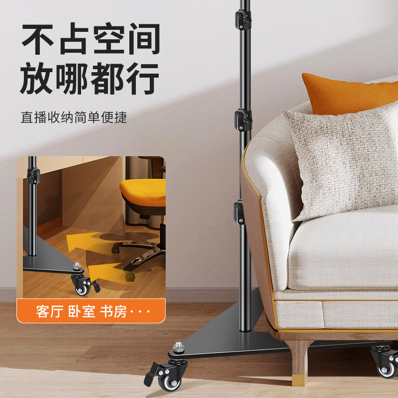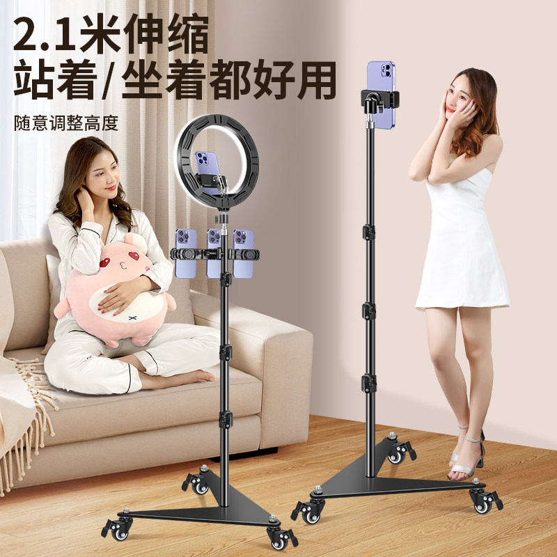 【带万向滑轮】手机支架直播专用2025新款带补光灯拍照三角架子拍摄落地三脚架懒人追剧床头多功能支撑架