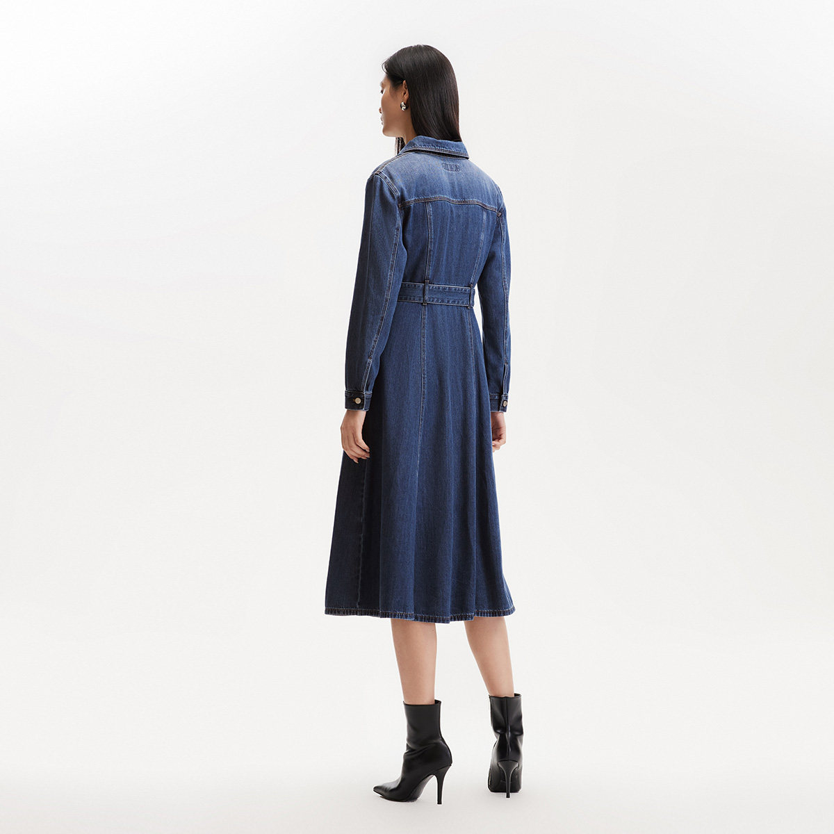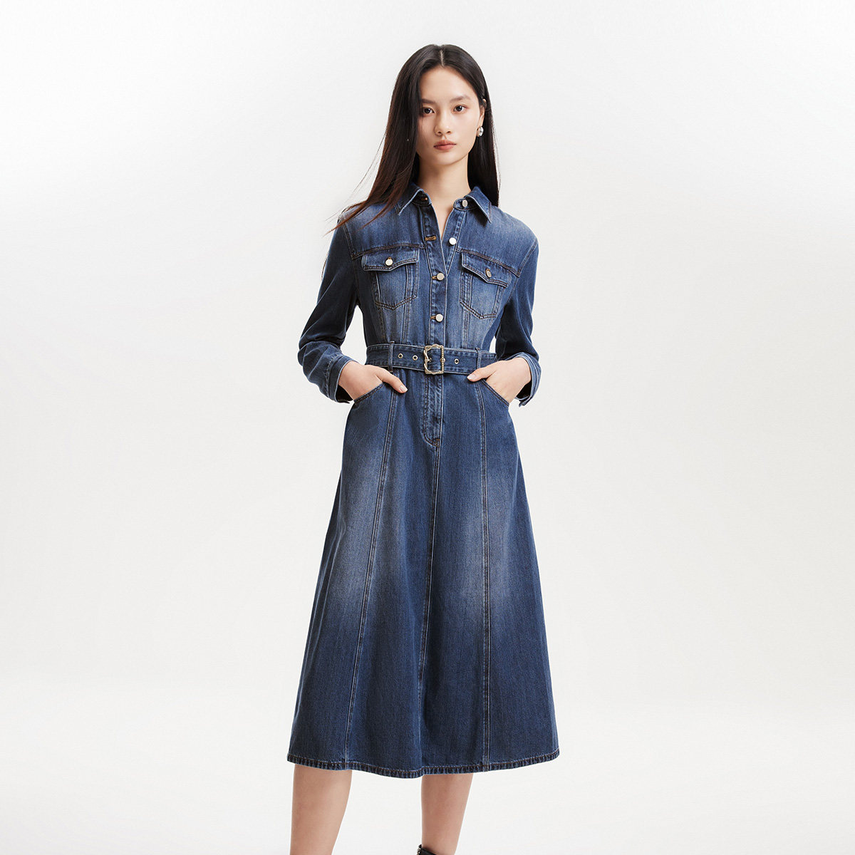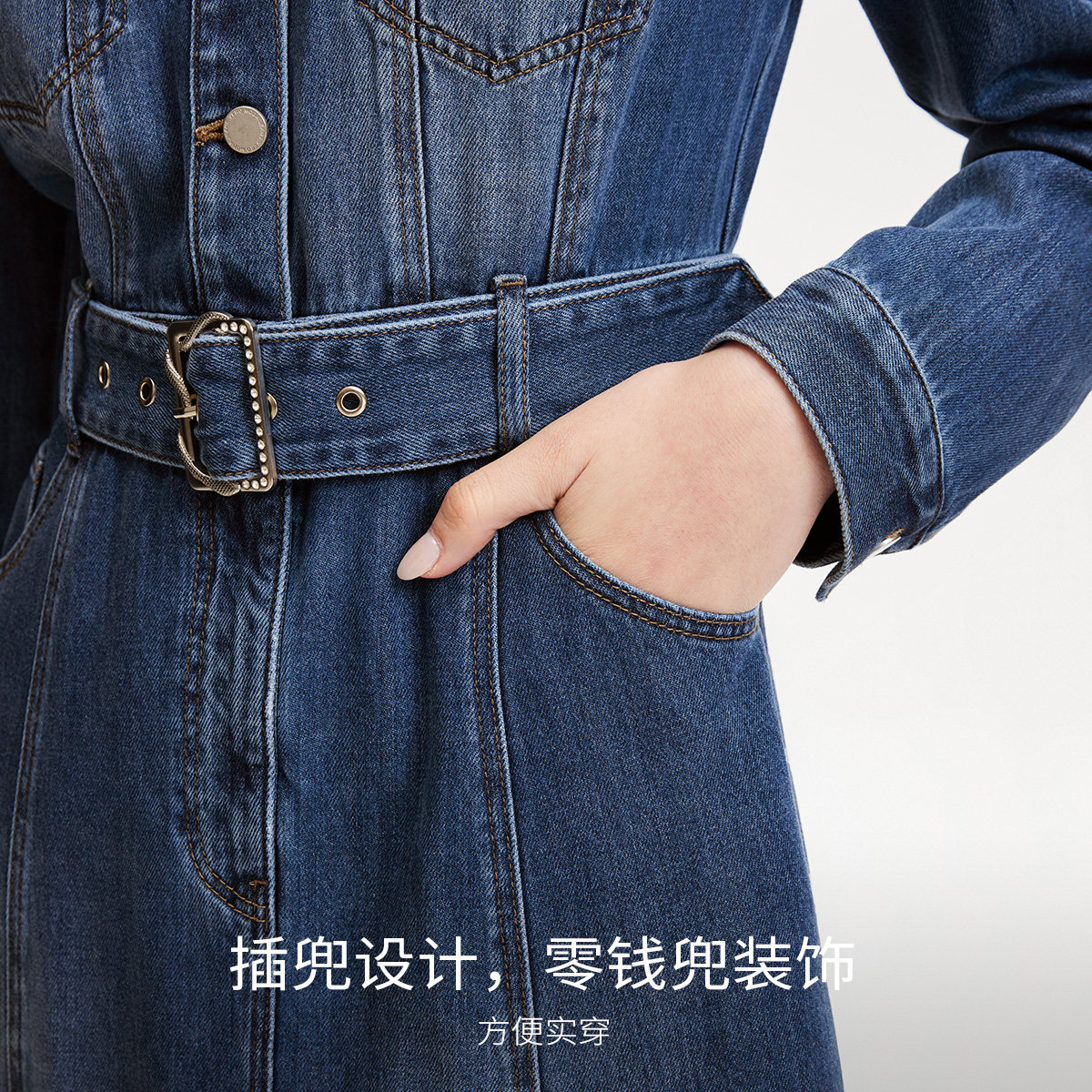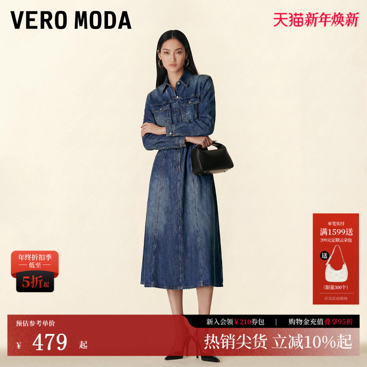 Vero Moda连衣裙女2025秋季新款收腰系带A字天丝牛仔裙cleanfit
