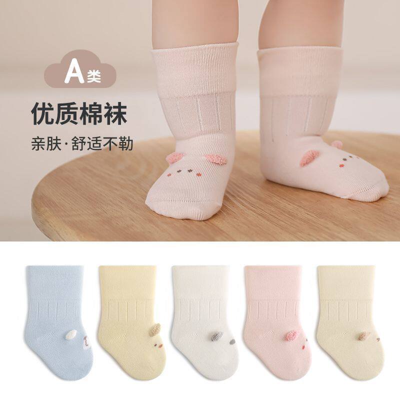 新生婴儿袜子棉袜a类卡通中筒袜春秋宝宝松口可爱短袜0一3岁儿童