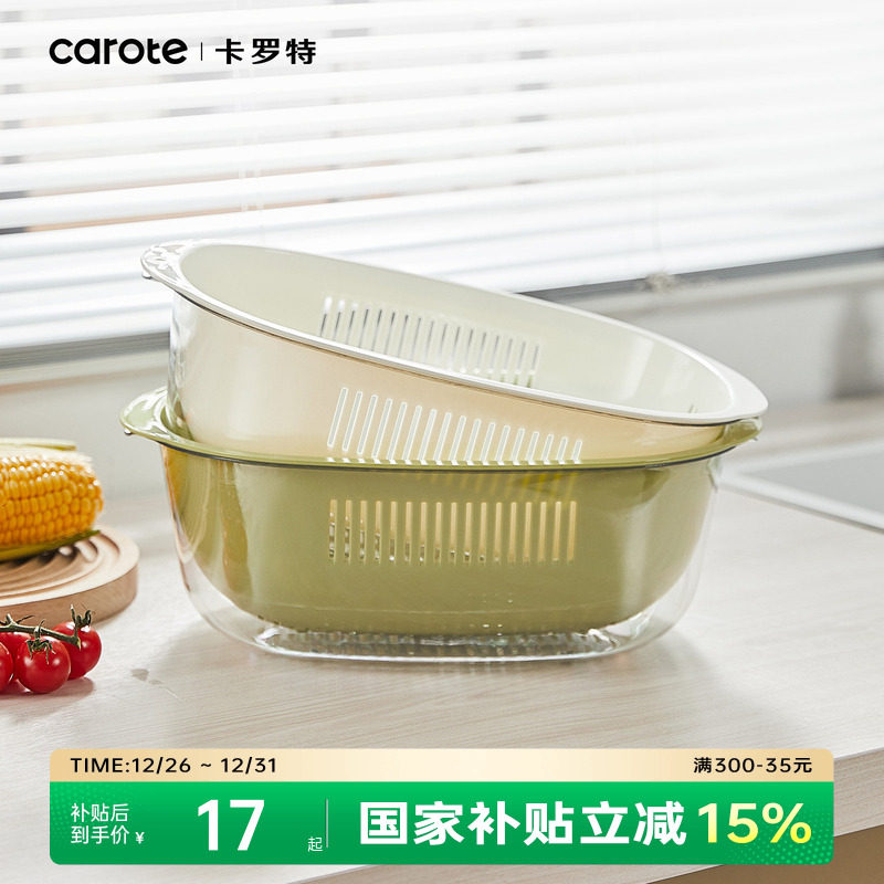 卡罗特沥水篮新款水果篮家用洗菜盆洗水果滤水漏网篮菜篮厨房收纳
