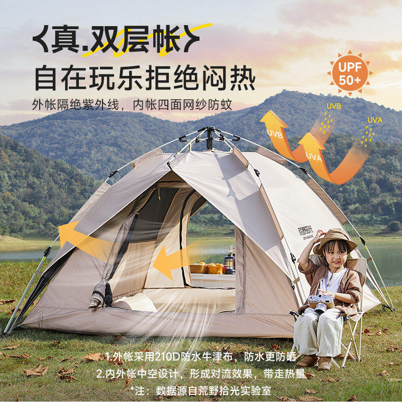 露营帐篷户外野营过夜折叠便携式防雨加厚双层野外装备室内全自动