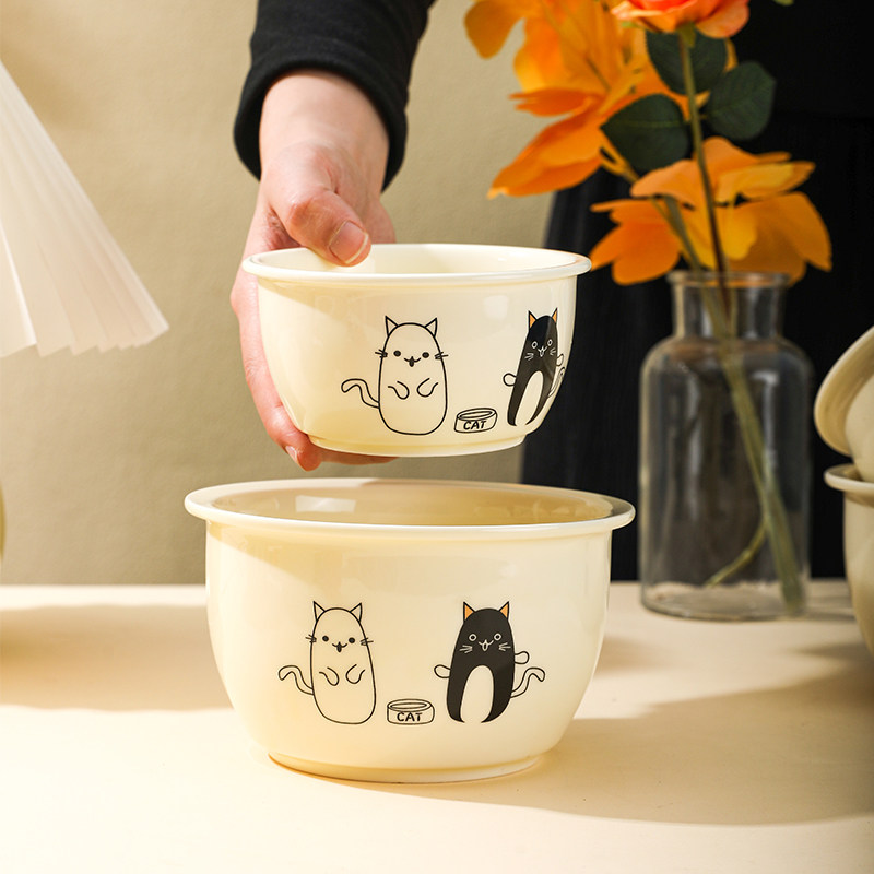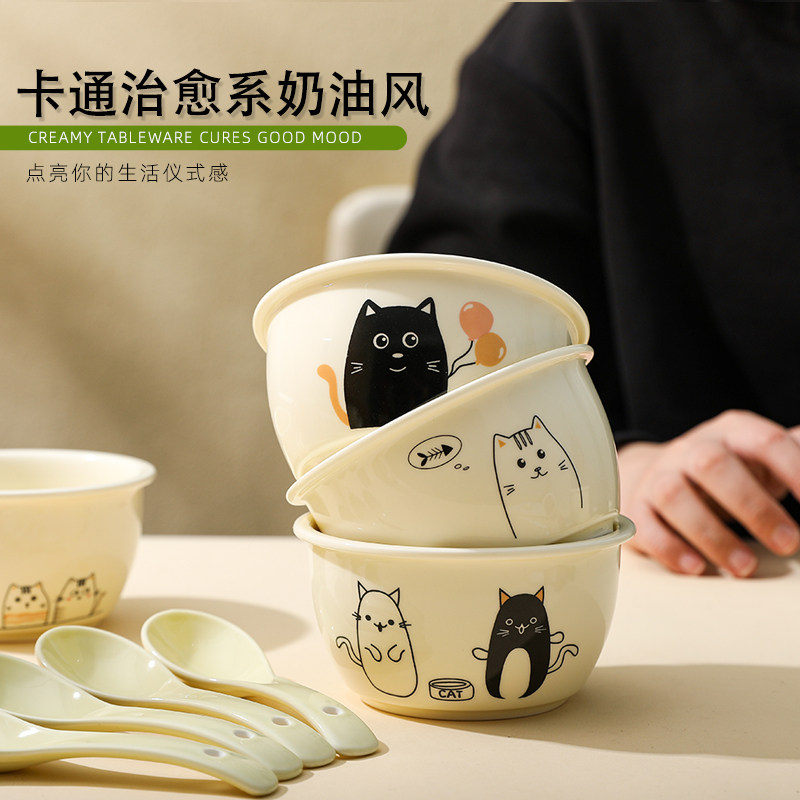 奶油风陶瓷碗家用卡通菜盘子可爱米饭碗汤碗釉下彩儿童餐具耐高温