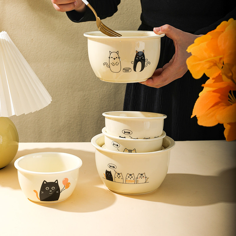 烤箱专用陶瓷烤碗家用带手柄碗水果沙拉碗卡通学生宿舍单柄泡面碗