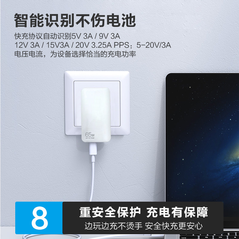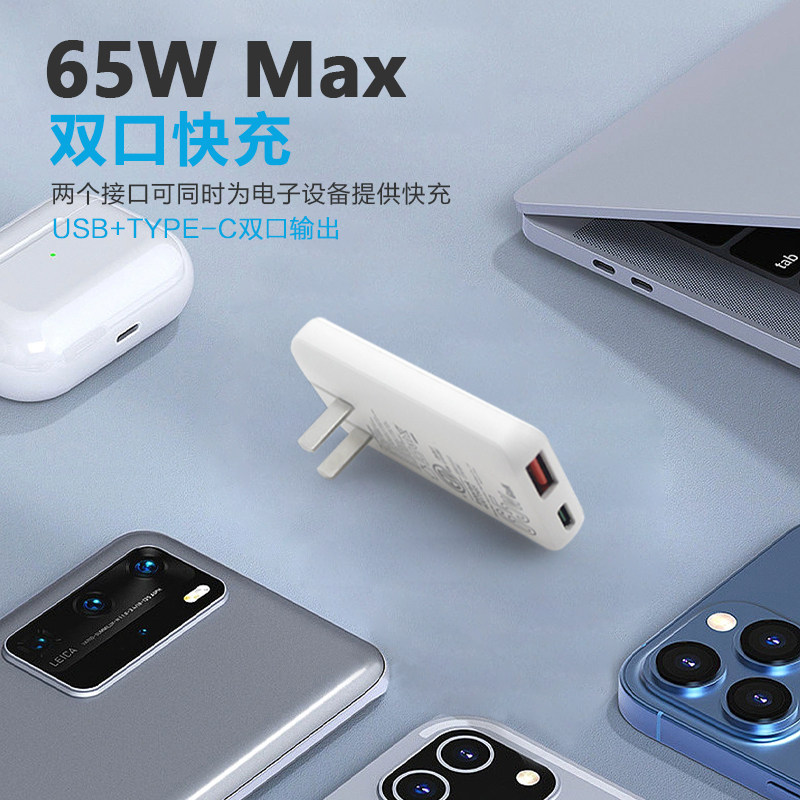 氮化镓超级快充65W适配华为/荣耀/小米/魅族手机平板充电器套装 双口USB+type-c快充充电头配1米5A快充充电线