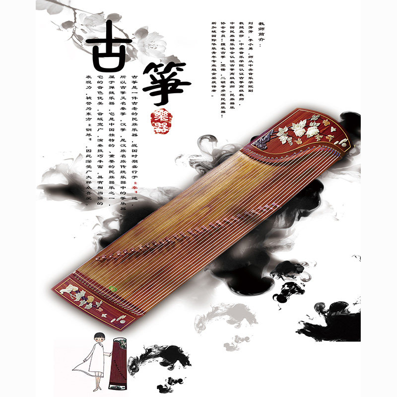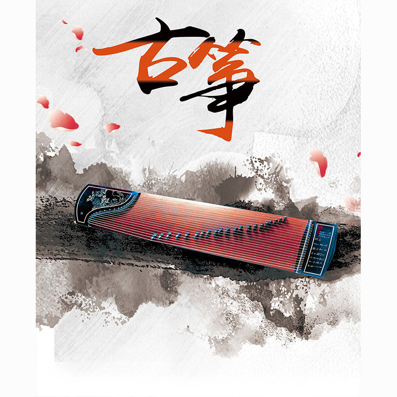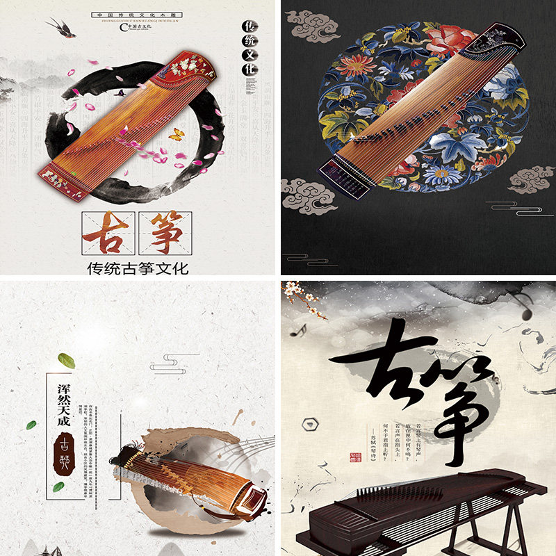 古筝乐器教育培训音乐教室古风男女主播拍视频段子直播背景布3d立体壁纸画直播间场景布置汉筝秦筝拍照道具
