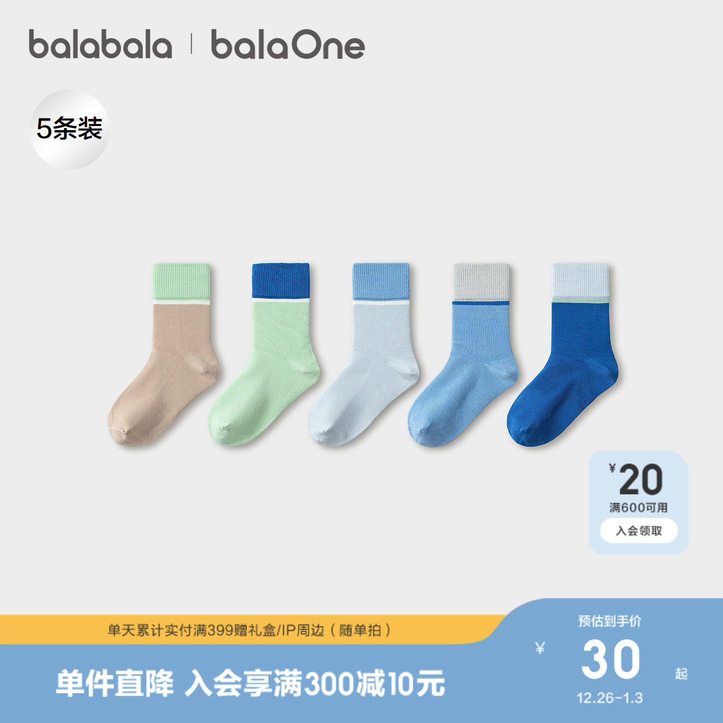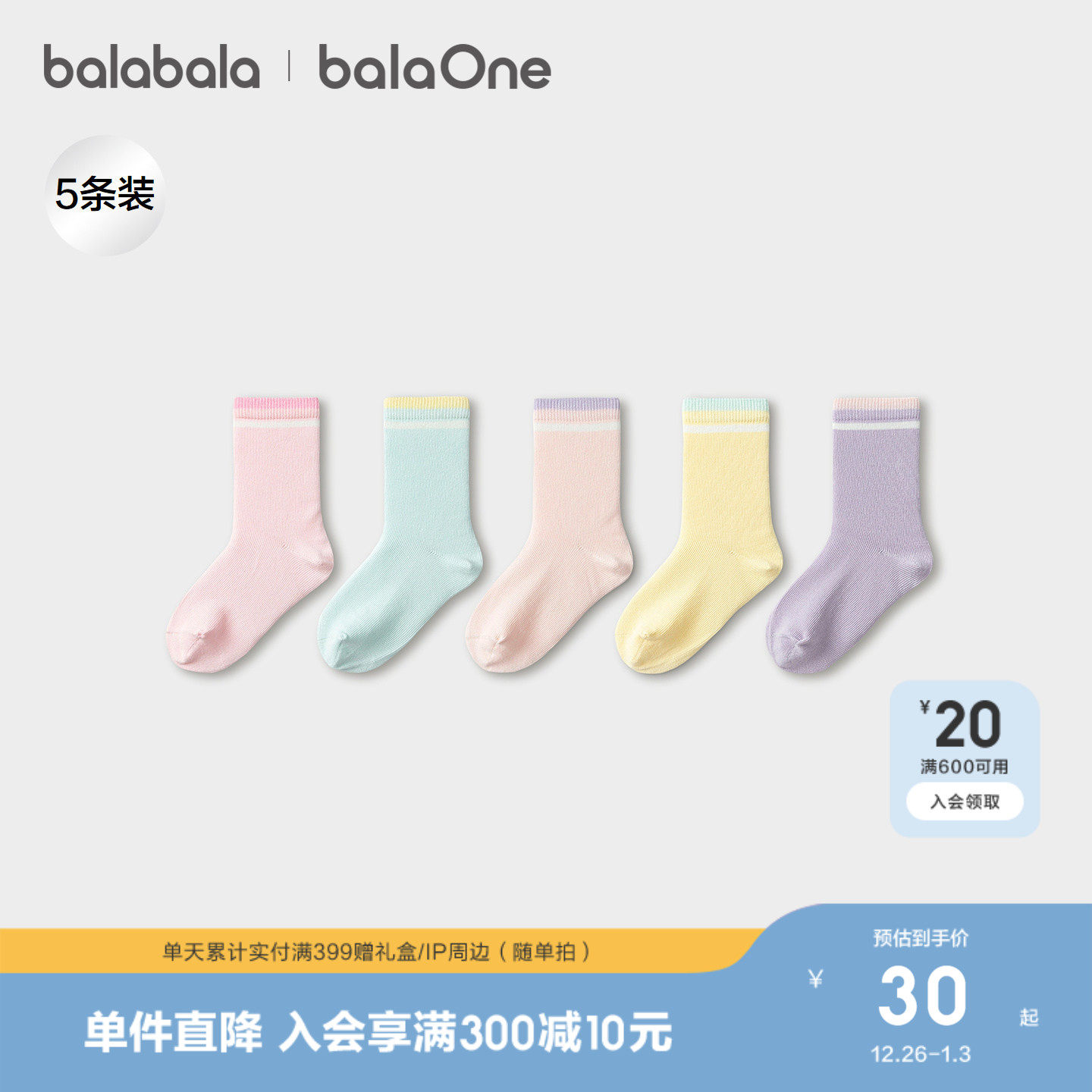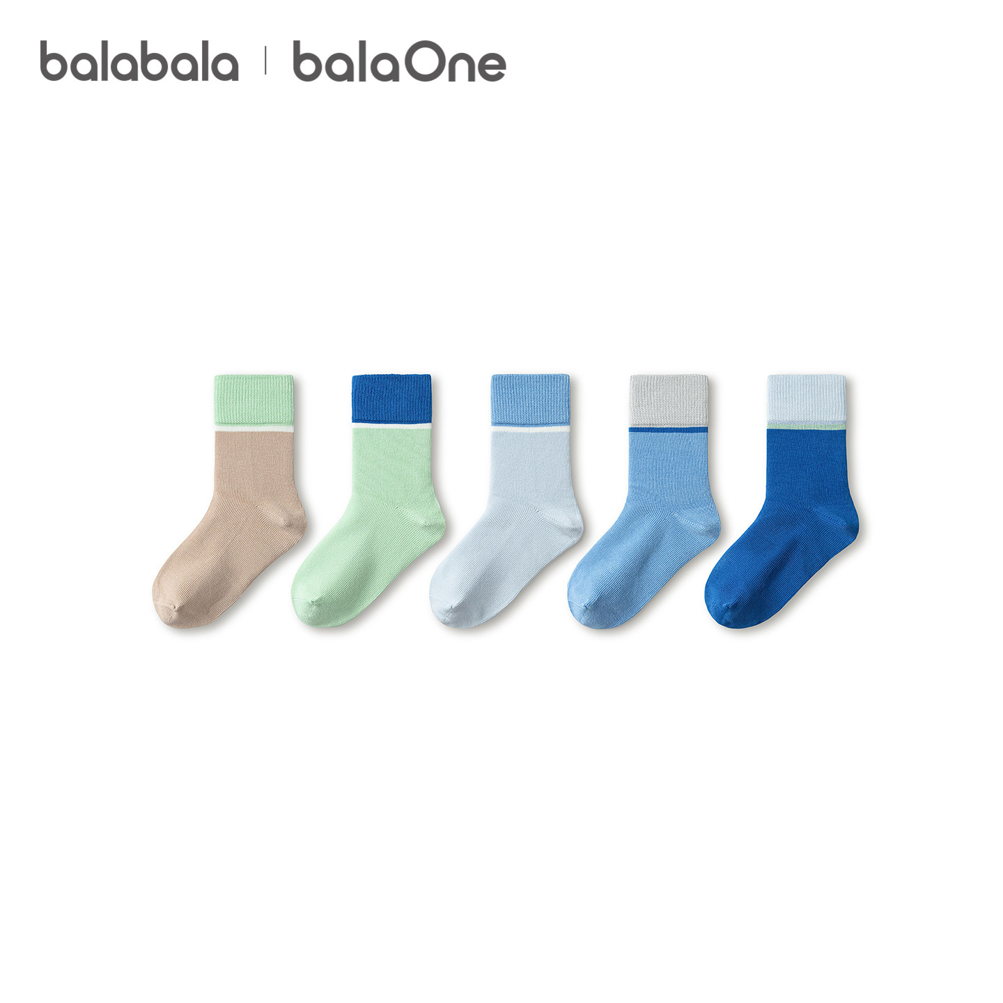 巴拉巴拉儿童袜子春秋男童女童棉袜儿童宝宝中大童学生打底五双装