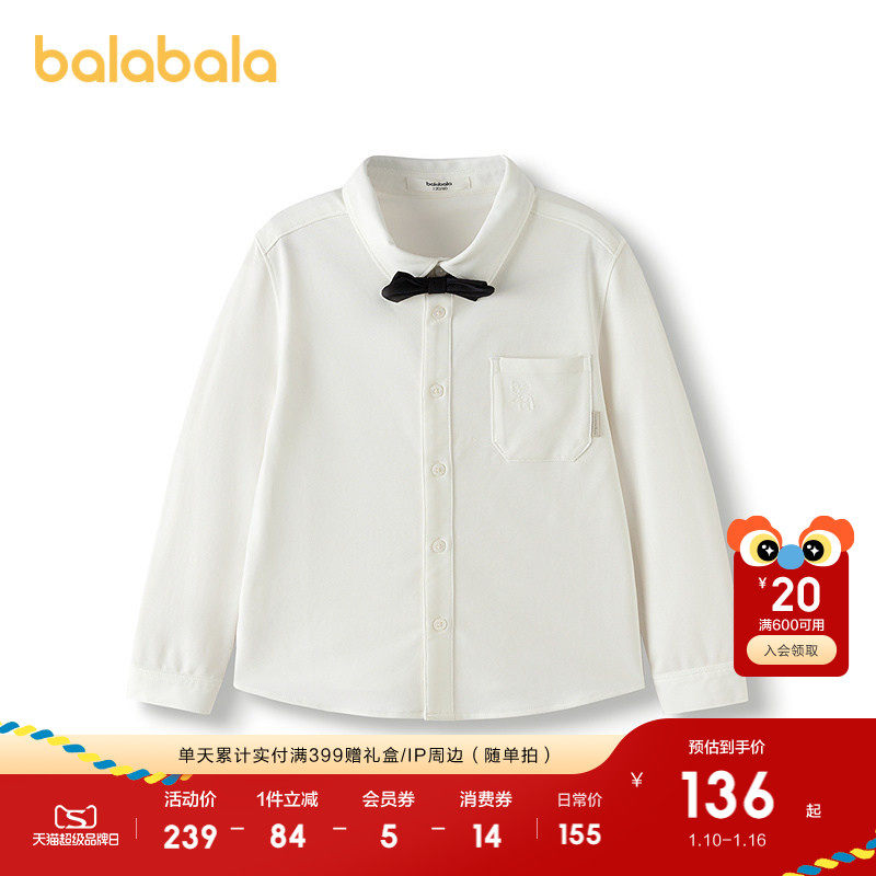 巴拉巴拉童装男童衬衫儿童长袖2025新款秋装中大童衬衣潮时尚潮酷