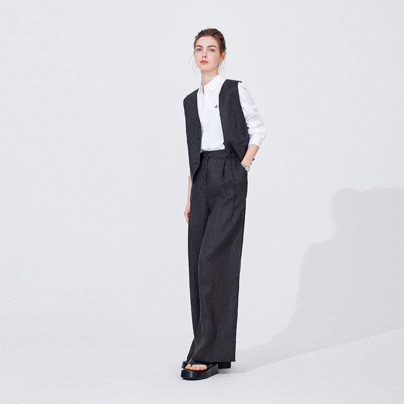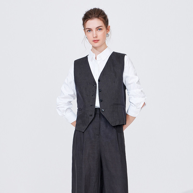 [亚麻]Navigare意大利小帆船灰色西装马甲女休闲坎肩无袖马夹外套