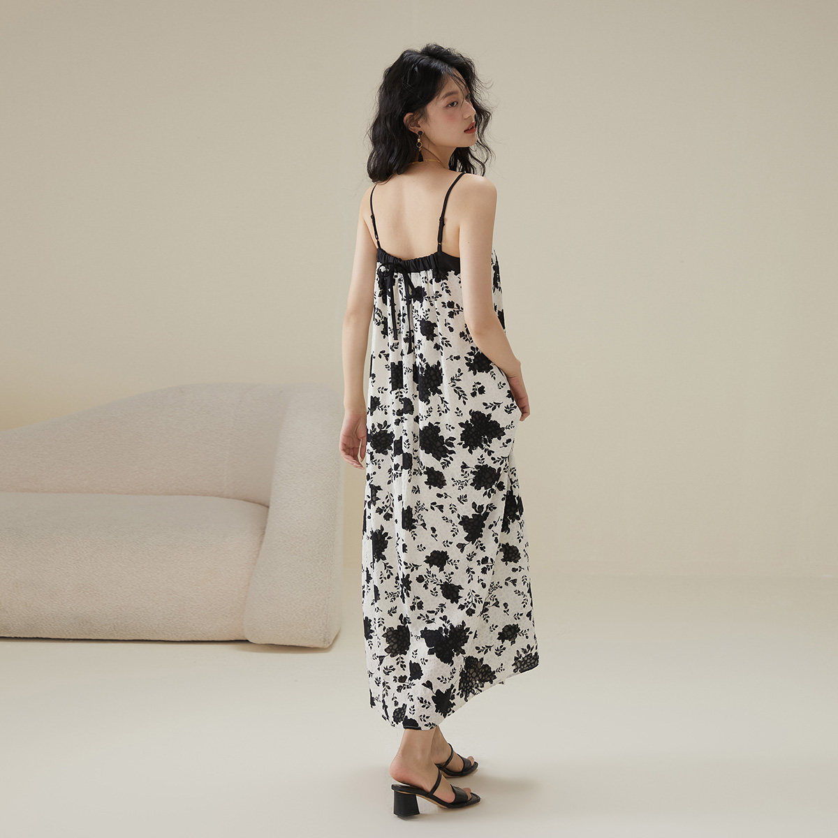 复古碎花吊带裙女2026夏季薄款宽松度假连衣裙高级感雪纺长裙