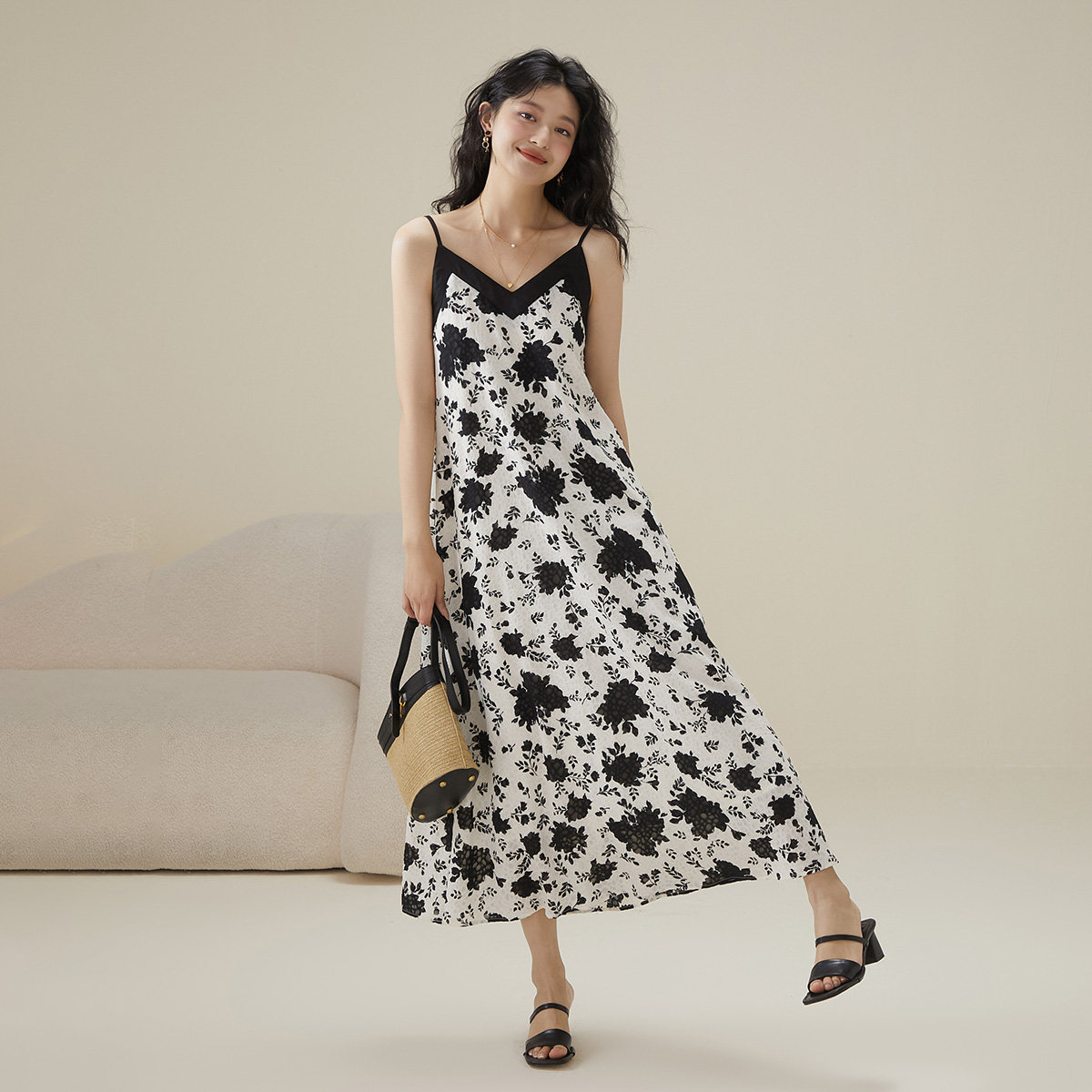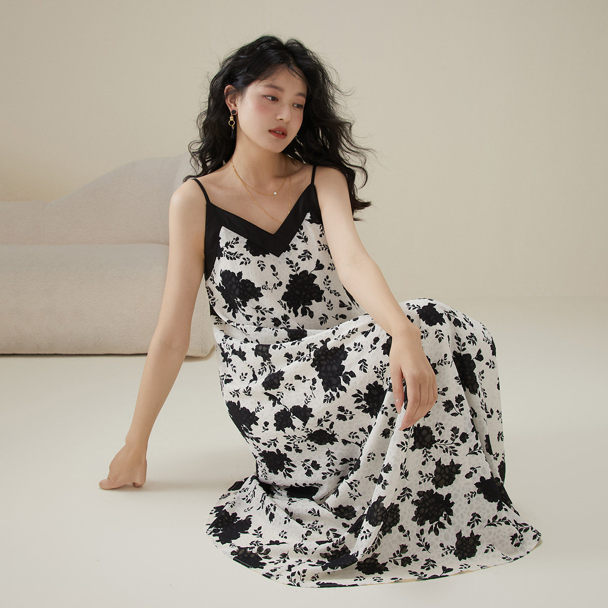 【裙子清仓99元起】半练带胸垫连衣裙秋季打底背心裙黑白吊带裙子