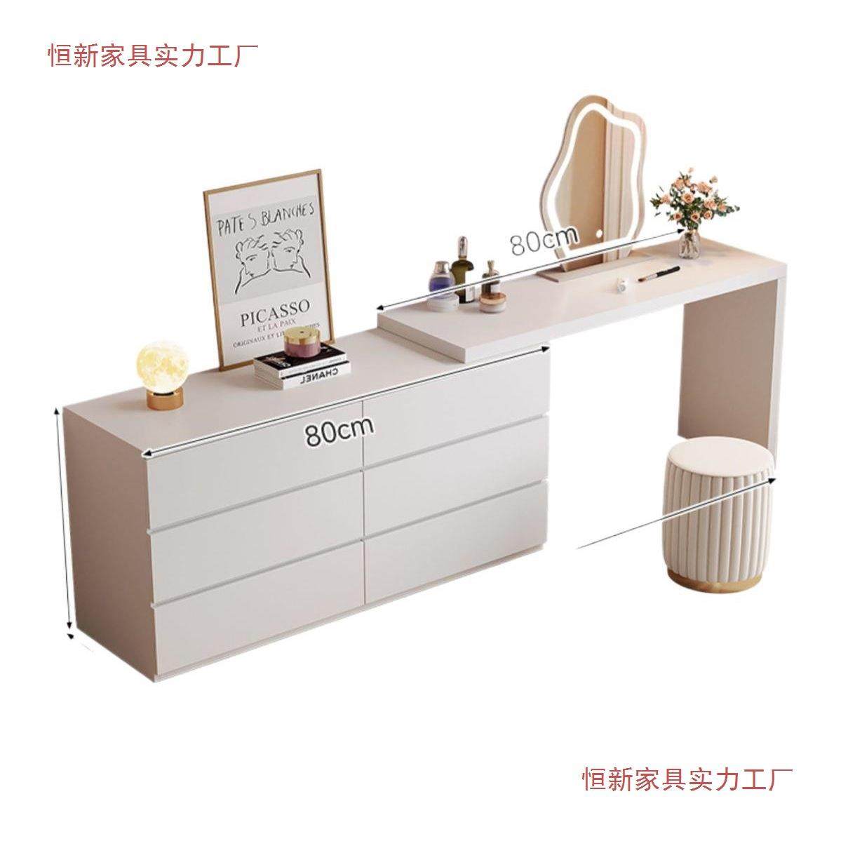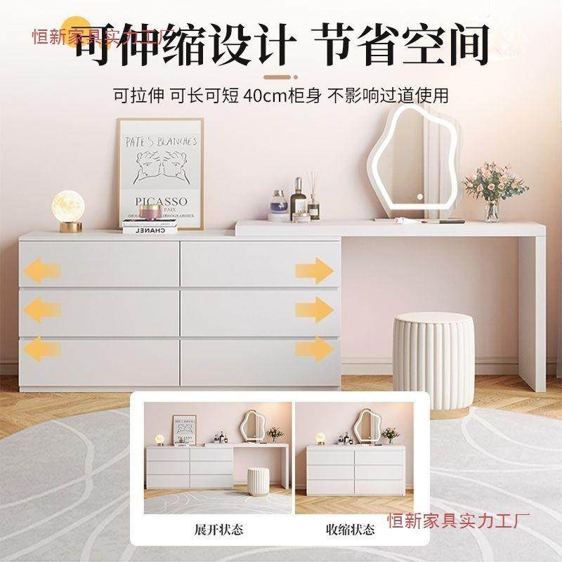 梳妆台卧室现代简约斗柜一体小户型收纳柜奶油风书桌可伸缩化妆桌