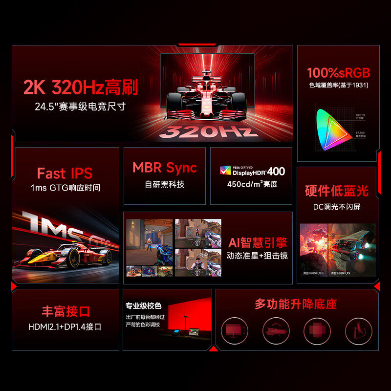 AOC Q25G4S 2K高清320Hz旗舰电竞显示器Fast IPS硬件低蓝光游戏屏