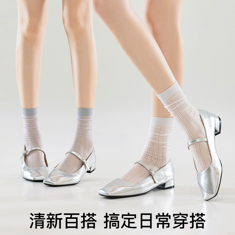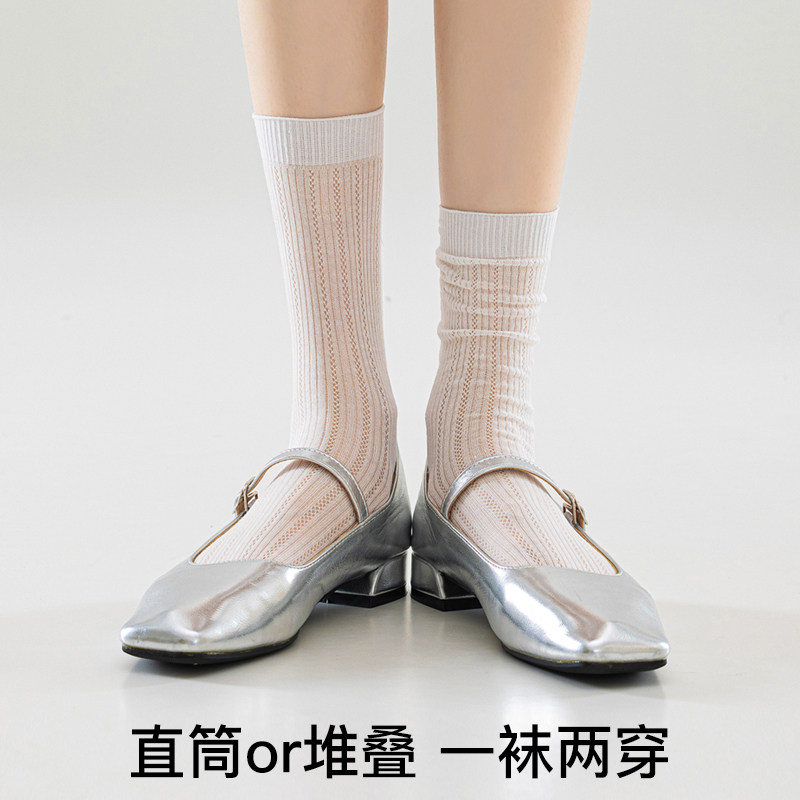 桑蚕丝袜子配玛丽珍鞋女夏季薄款堆堆袜中筒袜芭蕾风冰冰白色长袜