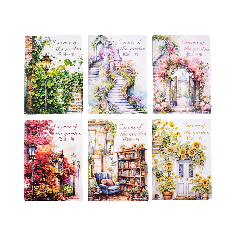 复古楼梯 花园路边座椅路灯造景贴纸植物花卉自沾手账diy装饰素材