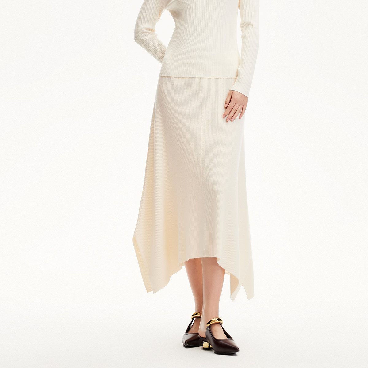 Vero Moda半身裙2025春季新款羊毛混纺不规则裙摆针织长裙优雅