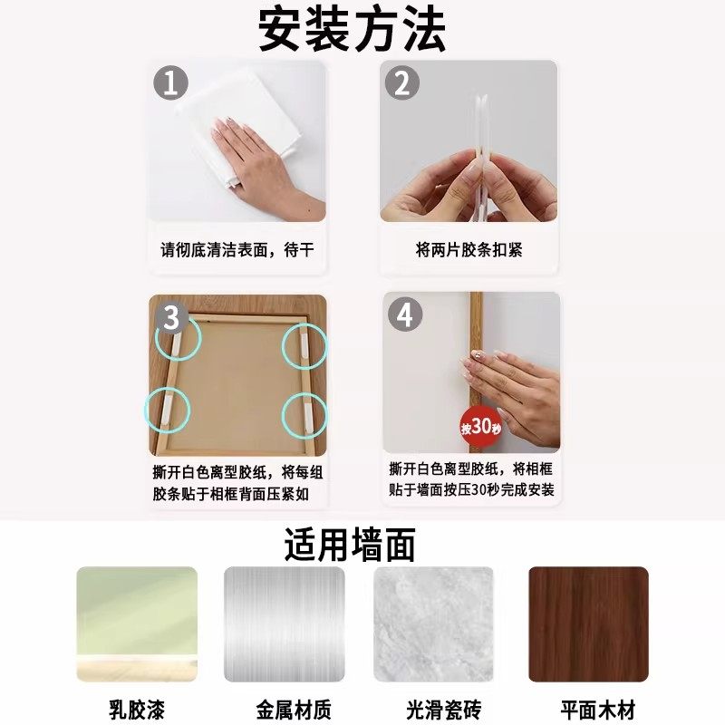 挂画神器免打孔婚纱照相框挂墙钉魔力扣无痕胶魔术贴画框粘贴挂钩