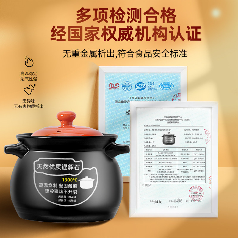 九阳砂锅家用燃气灶专用煲汤炖锅陶瓷煲仔饭汤锅耐高温冷热不裂炊