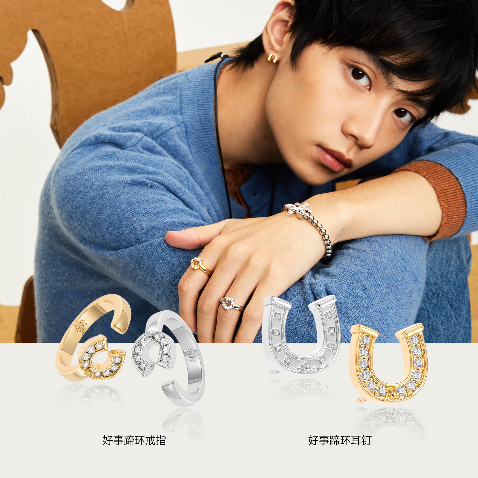 明星同款babama好事系列马蹄耳钉女马年耳饰情人节礼物耳夹男款
